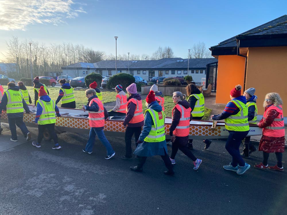 On Saturday last , our members took on a challenge, moving our 22-person dragon boat across town to the Castlebar Men’s Shed, located behind the ATU and Hospital on the Old Dublin Road. What began as a simple plan quickly turned into a memorable community outing.
